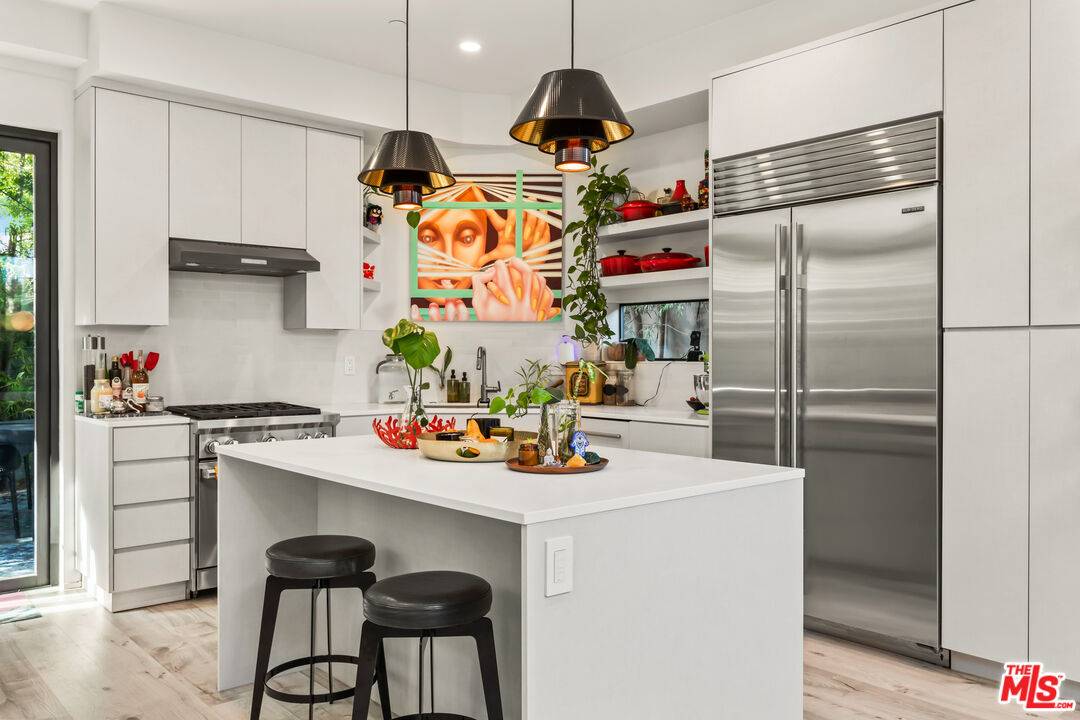 Incredible value in one of Venice's most coveted neighborhoods - Just three blocks from the ocean and two from Abbot Kinney, this four-level contemporary by architect Ameen Ayoub epitomizes refined coastal living. Flooded with light on a corner lot, the main residence features 3 bedrooms with en-suite baths and an airy indoor-outdoor flow, while a private-entry 1-bed/1-bath ADU with a separate address offers effortless flexibility for guests, work, or income. Luxe finishes include a Wolf range, Sub-Zero refrigeration, seamless Corian countertops, and sleek Porcelanosa flooring and cabinetry. A show-stopping rooftop deck crowns the home with sweeping 360 views from the Santa Monica Mountains to Bel Air - perfect for sunset entertaining or quiet evenings under the stars. Lush Birds of Paradise and twin cactus gardens frame the architecture and invite coastal breezes.