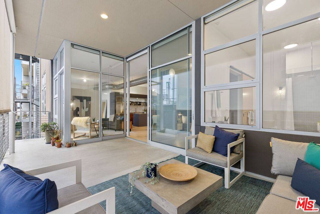 Experience the perfect blend of modern design and creative energy at Gallery Lofts, located in the heart of the vibrant Marina Arts District. This spacious second-floor loft-style home showcases south-facing views, soaring ceilings, dramatic floor-to-ceiling windows, and oversized Fleetwood sliding doors that flood the space with natural light and fresh coastal breezes. Step inside to an open-concept layout that balances style and functionality. The sleek kitchen is equipped with stainless steel appliances ideal for culinary inspiration or everyday dining. A generous private patio seamlessly extends the living area outdoors, perfect for morning coffee, relaxing evenings, or al fresco dining. The primary suite provides a peaceful retreat with a spacious walk-in closet and a spa-inspired bathroom featuring a soaking tub and a separate glass shower. The secondary bedroom, home office, or den is the perfect flex space to suit your personal living style and includes an adjacent bath. Additional highlights include automated window shades, central A/C and heat, a tankless water heater, in-unit laundry, and 2-car tandem parking with exclusive-use EV charging pre-wiring, plus ample guest parking. Set within a beautifully landscaped community, Gallery Lofts offers residents access to a tranquil outdoor lounge complete with BBQ grills, a welcoming space to entertain, connect with neighbors, or unwind under the stars. Located just minutes from Venice Beach, Abbot Kinney, and Playa Vista, this home is surrounded by Marina del Rey's best lifestyle amenities including bike paths, boutique shopping, local theaters, dining hotspots, and daily conveniences. This is modern coastal living at its finest, offering a rare opportunity to enjoy the best of both urban energy and seaside serenity.