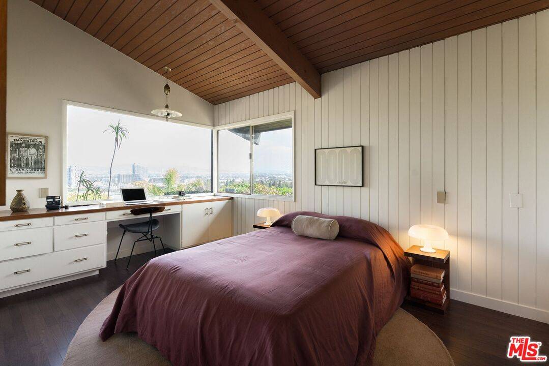 Perched on a private street off Wrightcrest Drive, this sophisticated mid-century gem is suspended over the city with breath-taking panoramic Los Angeles views from every window. The dramatic living room has vaulted ceilings with a two story picture window framing a view from downtown Los Angeles to the Griffith Observatory and Hollywood Hills. Prepare to be wowed. This L-shaped gem wraps around a lush landscaped backyard featuring a renovated salt-water pool, fire-pit, and a bonus side yard with a sitting area which offers a stunning pinpoint view of Downtown LA, as if it was designed solely for this perspective, perfect for your morning coffee or sunset gatherings. Timeless MCM details include; seamless indoor-outdoor flow, natural wood accents, expansive windows merging home with nature, vaulted ceilings in the living/family rooms, skylights bathing spaces with light, and original built-ins exuding era-defining charm. There are 4 bedrooms including a charming Jack-and-Jill (one large bedroom or two separate), luxurious primary en-suite with walk-in closet, and versatile office/guest room. Some modern upgrades include new plumbing, fully paid solar panels, dual-zoned HVAC system, gleaming hardwood floors, fresh fencing, revamped salt-water pool, and fire pit. Preserved original details meets modern comforts and all in Culver City Award Winning School District and Culver City Services! Blair Hills Park is at the end of the private drive and across Wrightcrest Drive, its blocks from the Stoneview Nature Center, across a footbridge from the massive Kenneth Hahn Park, close to the Baldwin Scenic Overlook, and easy access to the Park to Playa trail. Close to the new Whole Foods, Erewhon Market, The Culver Steps, Overlook, Platform, Downtown Culver City, Amazon, Apple, HBO, Sony and central to all Los Angeles has to offer! Come experience 5961 Wrightcrest Drive, a unique opportunity to own a once in a lifetime property.